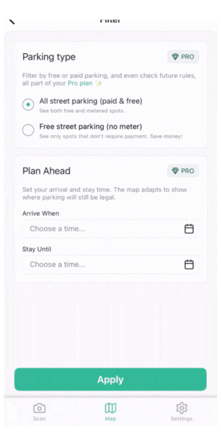 Filter Paid & Free Parking Spots (ParkUsher Pro)